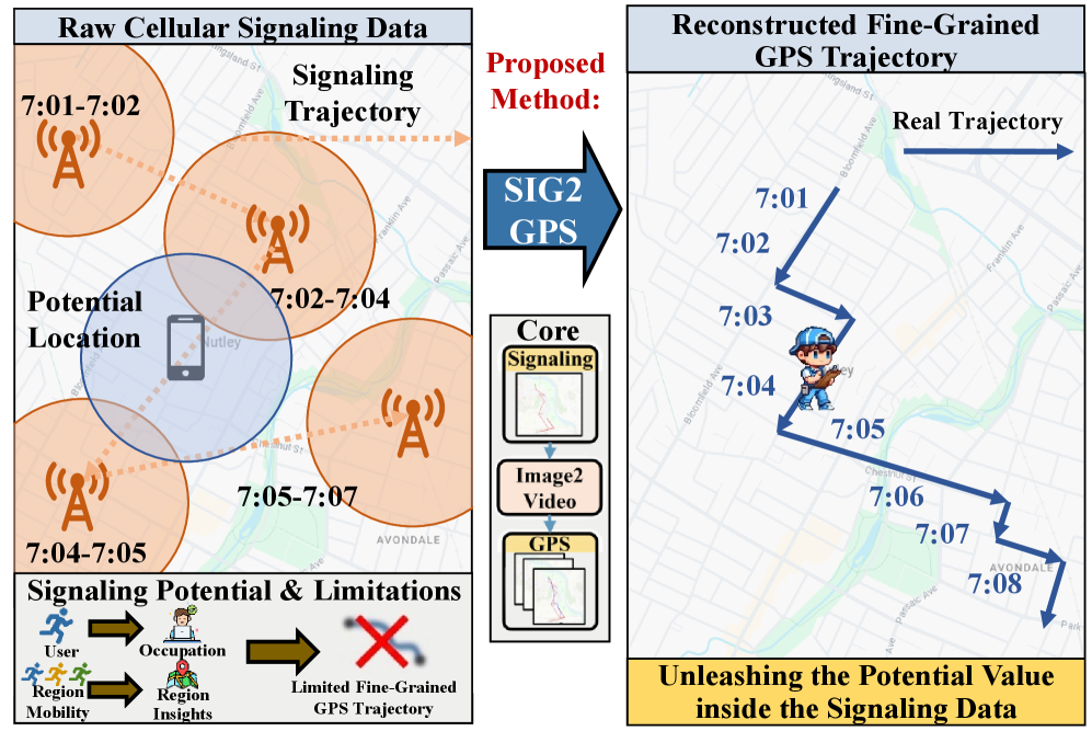 Think over Trajectories: Leveraging Video Generation to Reconstruct GPS Trajectories from Cellular Signaling